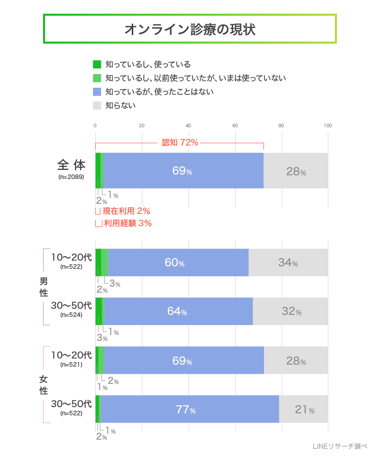 1.オンライン診療の現状と認知度2.どのくらいの人が使ってそう?~現在の流行体感~