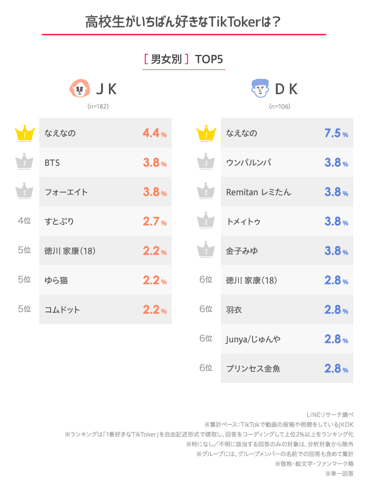 4.高校生が好きなTikTokerは?JK・DKともにTOPは「なえなの」