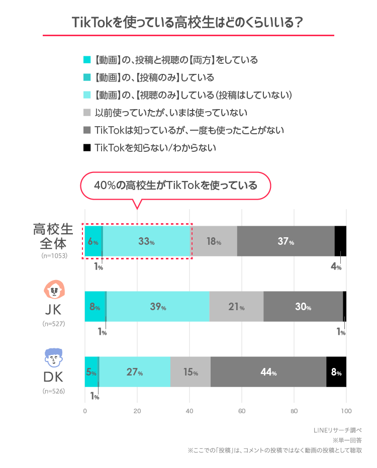 1.TikTokを使っている高校生は全体の40%!