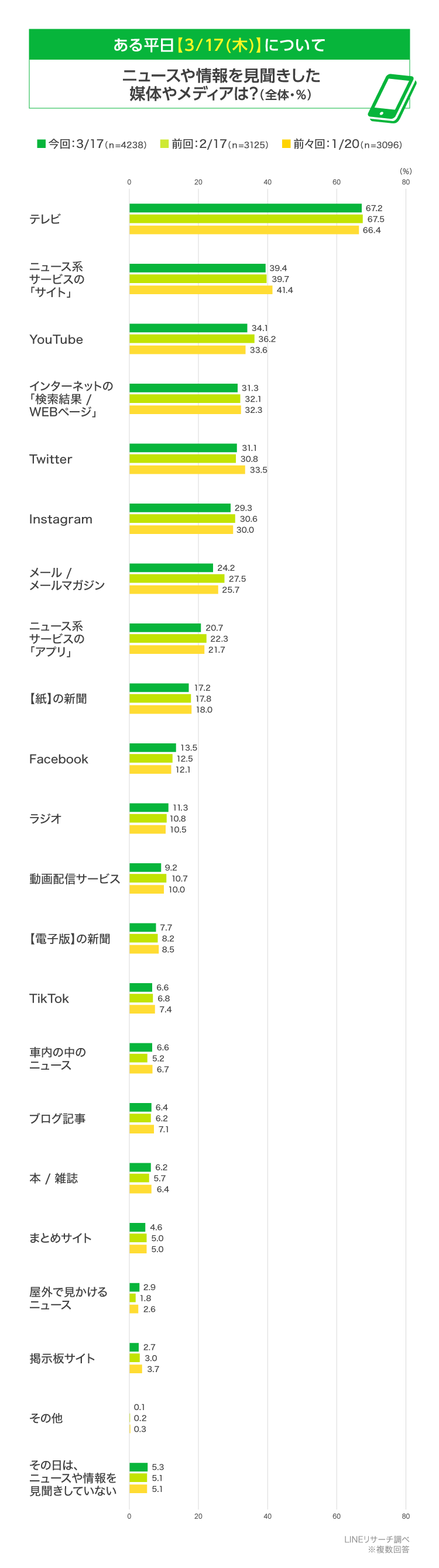 3.ある平日【3/17(木)】にニュースや情報を見聞きした媒体・メディア