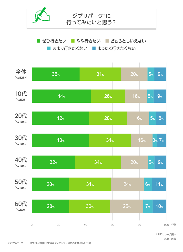次に「ジブリパーク」に、行ってみたいかを聞きました※。知らなかった方にも、今の気持ちで回答してもらいました。