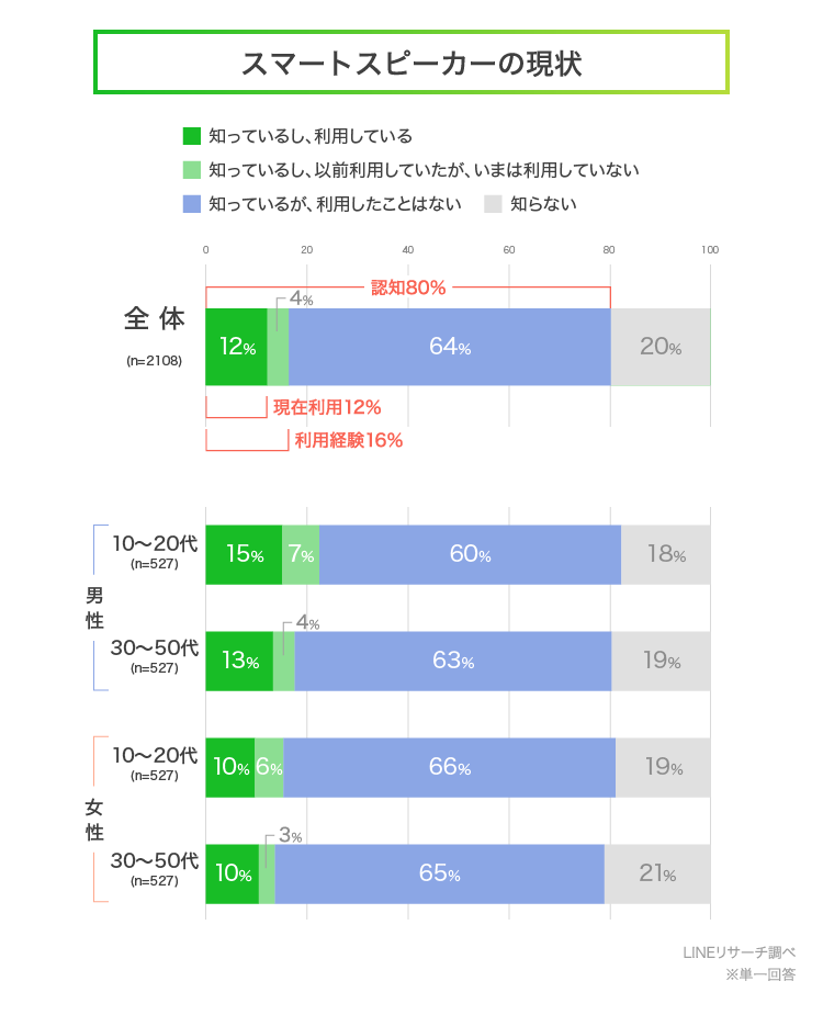 ・スマートスピーカーの認知率は全体で80%