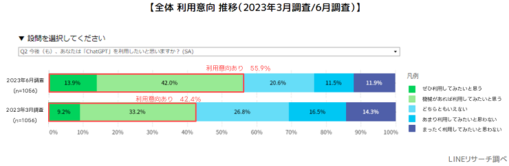利用意向についても、前回調査(2023年3月9日実施)からどのような変化があったか見てみましょう。