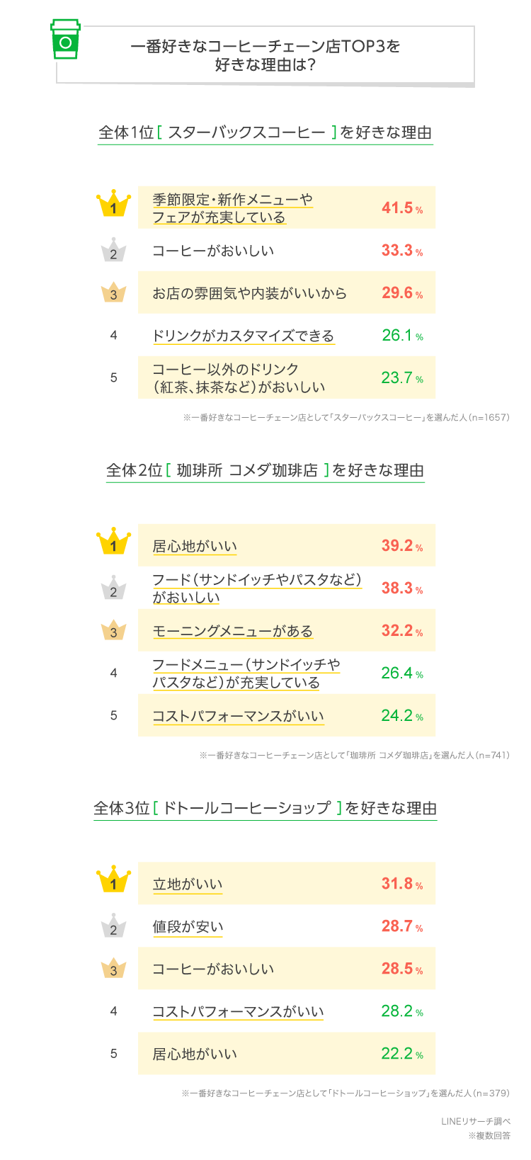 2.コーヒーチェーン店のTOP3を好きな理由は?