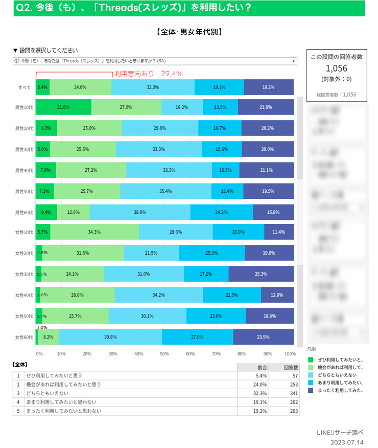 続いて、「Threads」について説明をしたうえで、「Threads」を利用したいと思うかを聞きました。