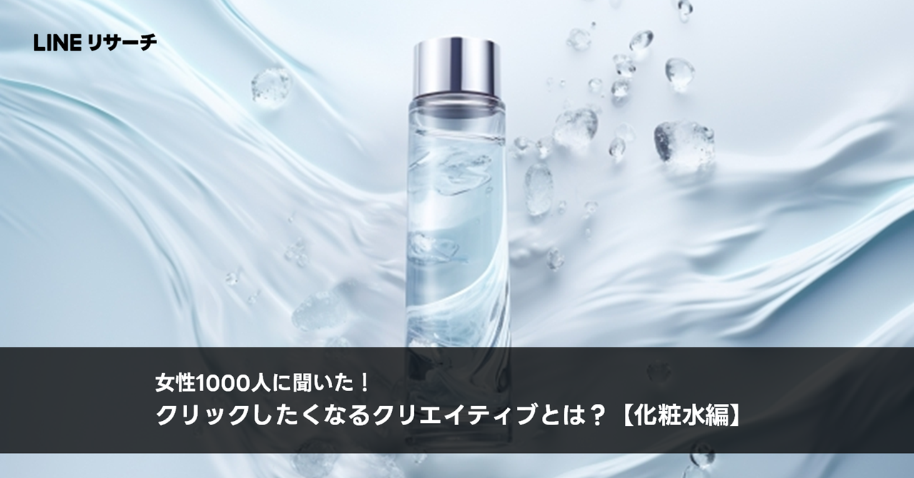今回は、LINEリサーチのセルフ型アンケートを活用して、どういったクリエイティブやキャッチコピーに興味を持ってもらえるのか、「化粧水」をテーマに調査を実施。広告のクリエイティブ効果をより高めるための施策の一環としてご参考ください。