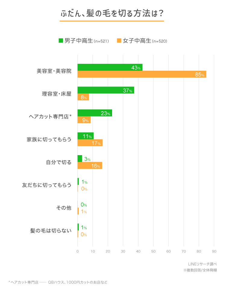 中高生にふだん、髪の毛を切る方法について聞きました。