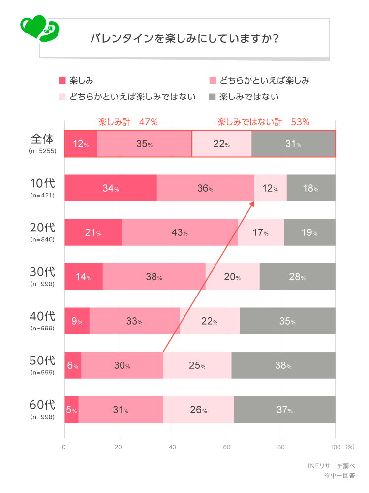 1.バレンタインを楽しみにしている人は約半数2.今年のバレンタイン、女性は年代によって手作り派とお店派にわかれる