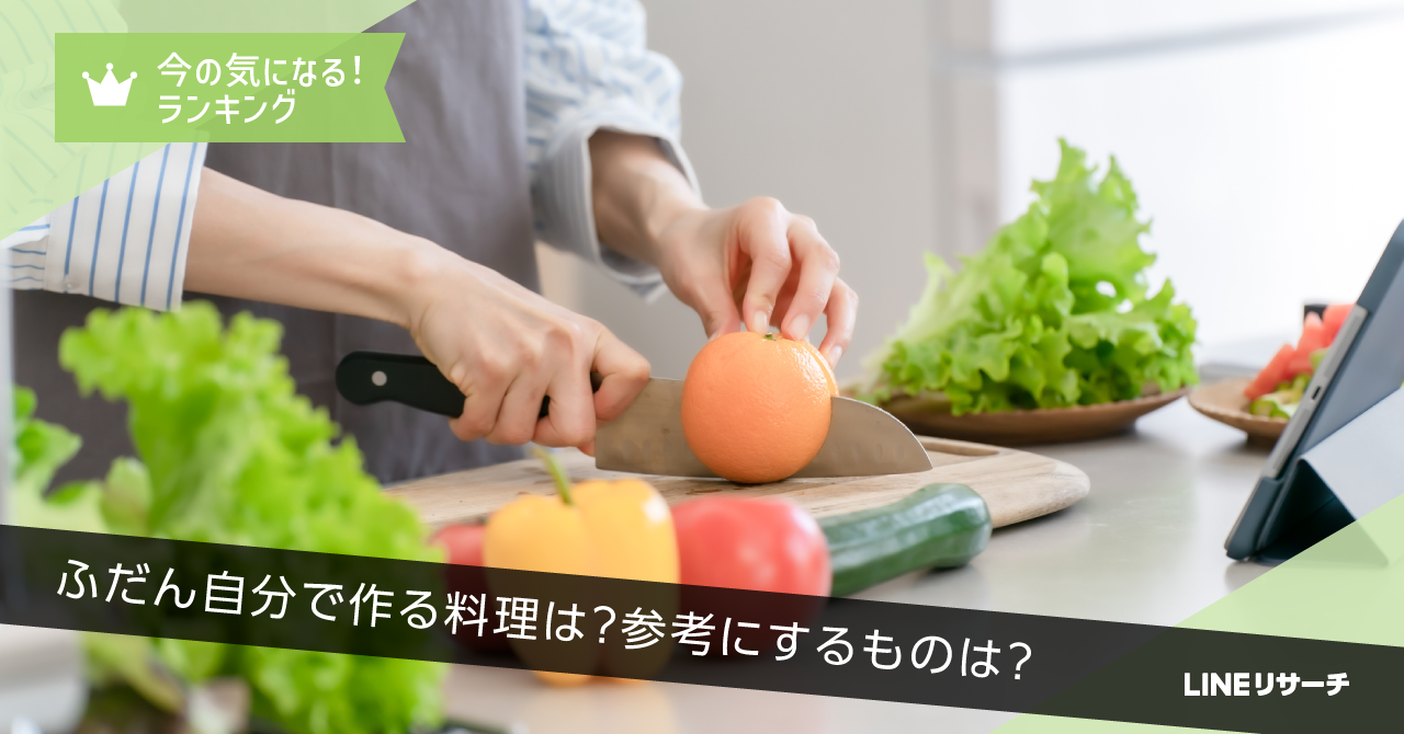 今回は10~60代の男女を対象に、ふだん自分で作る料理について調査しました。料理をする頻度やどんな料理を作るのか、レシピの参考にしているものについても聞きました。