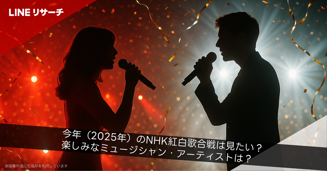 今回は、全国15~69歳の男女を対象に「第76回NHK紅白歌合戦」について、楽しみな出演者や、見たいかどうか、今後出演してほしいミュージシャン・アーティストについて調査しましたので、ご紹介します。