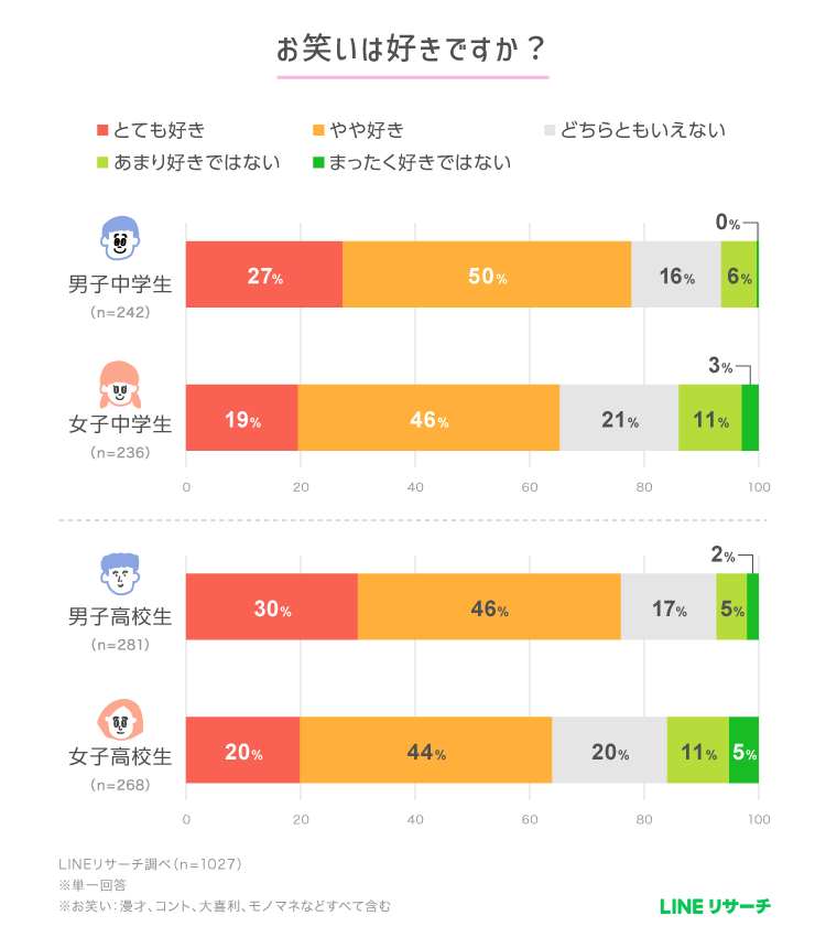 1.お笑い好きの割合2.中高生が一番好きなお笑い芸人ランキング