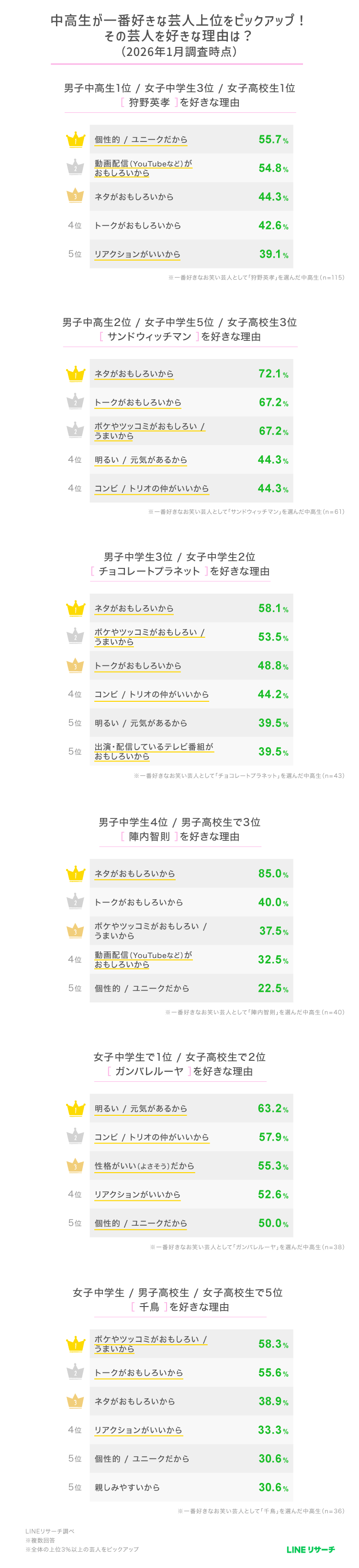 【中高生が一番好きなお笑い芸人とその理由】